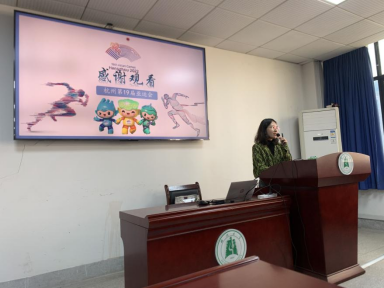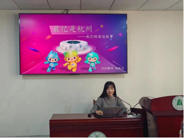 隨后,以“心心相融,愛達未來:亞運16天”為主題,20級翻譯專業(yè)李佳盈同學(xué)用一個精心制作的視頻帶領(lǐng)大家,以第一視角體會亞運會期間的工作日常。同學(xué)們由此更加深刻地體會到,亞運會期間,翻譯隊伍有辛苦、但更有快樂。同時,李佳盈同學(xué)分享了自己在亞運會所觀察到的“桂花”文化符號與徽章文化,提出亞運會靈活地將傳統(tǒng)文化與現(xiàn)代科技相交融,進一步提高了中國的大國形象。并鼓勵大家努力提高自身翻譯水平,也許未來也有機會參與進大型活動中,并為傳播中華文化貢獻自己的一份力!