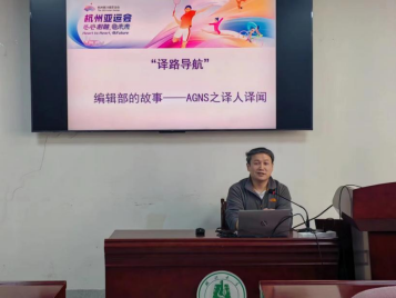 11月8日14:00,學(xué)院翻譯系邀請參與了杭州亞運會翻譯工作的呂奇老師、姚歆玙同學(xué)和李佳盈同學(xué)來為翻譯系2021級、2022級同學(xué)分享AGNS編輯部的精彩故事。