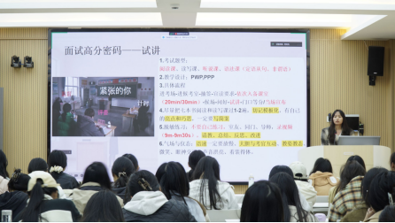 兩位學(xué)姐分別從心態(tài)準(zhǔn)備和調(diào)整、筆試思維導(dǎo)圖的梳理、面試重難點、教案準(zhǔn)備技巧、著裝規(guī)范與禮儀等方面為同學(xué)們進(jìn)行了經(jīng)驗傳授和現(xiàn)場講解。在互動環(huán)節(jié)中,針對同學(xué)們的提問答疑解惑、分享從教以來的心路歷程。活動氛圍熱烈,現(xiàn)場交流互動活躍。