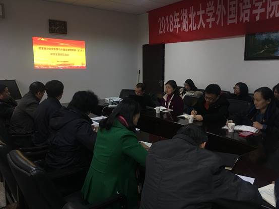 根據(jù)中央、省委關(guān)于在廣大知識(shí)分子中深入開展“弘揚(yáng)愛國(guó)奮斗精神、建功立業(yè)新時(shí)代”活動(dòng)部署和學(xué)校黨委有關(guān)要求,外國(guó)語(yǔ)學(xué)院黨委定于12月份開展“弘揚(yáng)愛國(guó)奮斗精神、建功立業(yè)新時(shí)代”支部主題黨日活動(dòng)。12月24日,學(xué)校招生就業(yè)處黨支部和外國(guó)語(yǔ)學(xué)院黨委(擴(kuò)大)聯(lián)合開展了特殊黨日活動(dòng),招生就業(yè)處全體黨員、學(xué)院黨委委員、系部主任、院辦主任、畢業(yè)班班主任參加。活動(dòng)由學(xué)院黨委書記林二友主持。