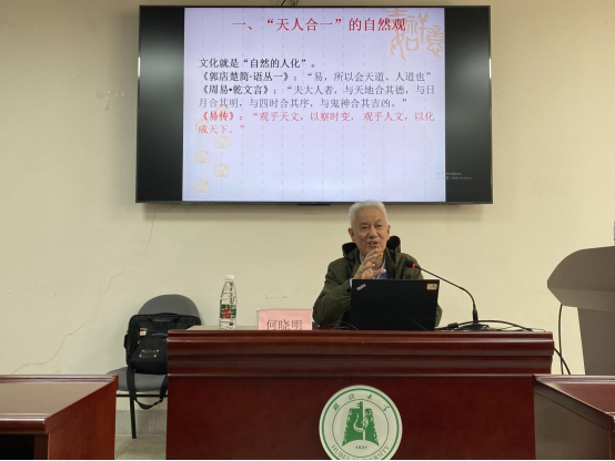 何曉明教授從“天人合一”的自然觀,“和而不同”的矛盾觀,“變通執(zhí)中”的發(fā)展觀,“剛健自強”的實踐觀,“尊親尚德”的社會觀等五個方面深刻、系統(tǒng)地闡釋了中國文化精神,向同學(xué)們展示了中國傳統(tǒng)文化的魅力,勉勵同學(xué)們大力傳承和弘揚珍愛自然、寬容大度、靈活應(yīng)變、自強不息、尊師敬長等中華優(yōu)秀傳統(tǒng)文化。何教授的輔導(dǎo)報告引經(jīng)據(jù)典、妙語連珠,將諸子百家等歷史典故與親身經(jīng)歷結(jié)合起來進行講解分析,深入淺出地解讀了中國文化精神內(nèi)涵。聽完報告會后,同學(xué)們紛紛表示深受教育、獲益匪淺。