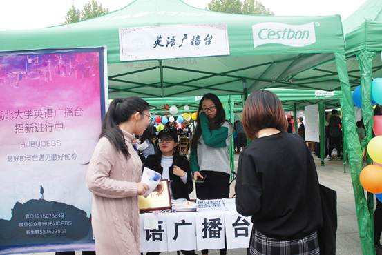 10月27日上午九點(diǎn),湖北大學(xué)校本部的“百團(tuán)大戰(zhàn)”在圖書(shū)館前求索廣場(chǎng)拉開(kāi)帷幕,97個(gè)風(fēng)格迥異的社團(tuán)參加了此次的社團(tuán)招新。其中包括外國(guó)語(yǔ)學(xué)院下屬的四個(gè)社團(tuán)——SOMA英語(yǔ)話(huà)劇團(tuán)、櫻花俱樂(lè)部、愛(ài)希美特法語(yǔ)協(xié)會(huì)和英語(yǔ)廣播臺(tái)。