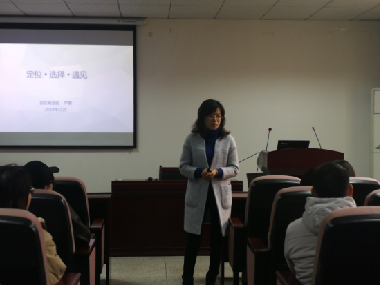 11月21日下午2:30,由外國語學(xué)院團(tuán)委主辦的以“定位?選擇?遇見”為主題的大學(xué)生職業(yè)規(guī)劃類講座在逸夫樓A1014順利進(jìn)行。湖北大學(xué)招生就業(yè)處嚴(yán)蓉副教授、外國語學(xué)院黨委副書記占婧以及外國語學(xué)院16、17級部分學(xué)生參與此次講座。