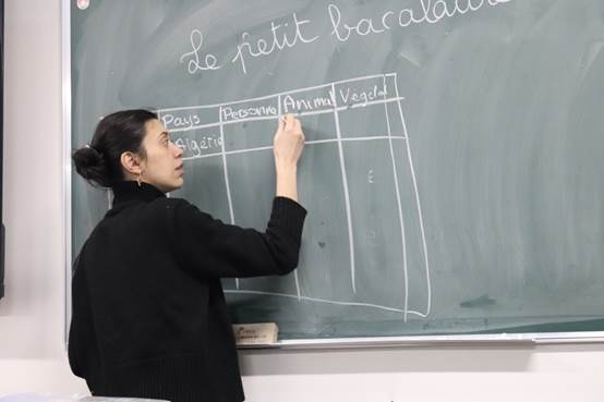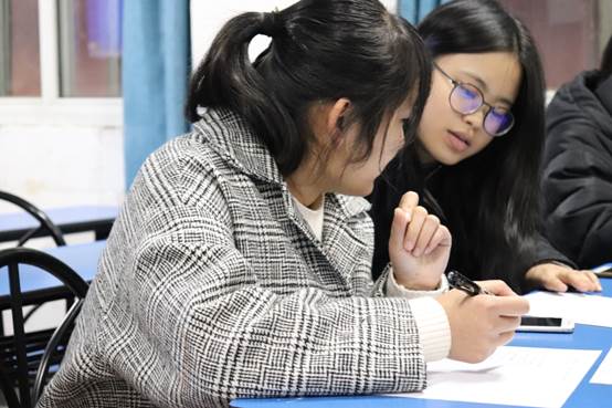 晚上7點,伴隨著舒緩悠揚的音樂,活動拉開了帷幕。為了讓參與其中的同學(xué)們更加認識到法語的魅力,更加了解法國文化,本次法語角中,外教老師以法語歌曲中的文化為主題,播放《J'ai demandé à la lune》(《問月》)、《Une chanson douce》(《一首溫柔的歌》)、《Je Vole》(《我要飛翔》)等歌曲,并為同學(xué)們詳細講解了歌曲含義及背景。同學(xué)們逐漸被法國文化所吸引,漸漸地融入到活動中。學(xué)完歌曲,同學(xué)們在外教的帶領(lǐng)下玩文字游戲,在遇到難題時相互討論,空氣中充斥著同學(xué)們的笑聲。