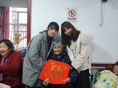 據(jù)悉,本次活動(dòng)以“迎元旦,賀新春”為主題,共包括出演新春小品,表演元旦舞曲,送上元旦祝福三個(gè)環(huán)節(jié)。開場(chǎng)參與人員上演的滑稽小品《賣拐》不僅逗樂了全場(chǎng)的老人,也使他們的的防騙意識(shí)得到提高。另外合唱歌曲《好運(yùn)來》《恭喜發(fā)財(cái)》充滿了年味,老人們也一起跟著節(jié)奏拍手,跟著唱了起來。手把手教老人寫福字的場(chǎng)面更是一派其樂融融的畫面,志愿者握著老人的手,用馬克筆一筆一劃地在紙上用心描摹著大大的福字,老人紛紛對(duì)志愿者寫的福字大加夸贊,一個(gè)個(gè)福字也增添了幾分熱鬧喜慶。臨走前,志愿者們送上親手制作的紅燈籠,向每一位爺爺奶奶提前送上了元旦祝福。