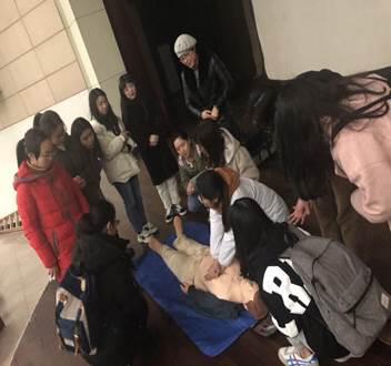 講座結(jié)束后,部分同學(xué)還與醫(yī)護(hù)人員一起模擬演練心肺復(fù)蘇過程,現(xiàn)場實(shí)踐學(xué)習(xí)緊急救護(hù)知識。