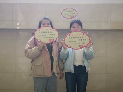 據(jù)悉,教四樓棟課間人流量巨大,而樓道空間狹小,難免產(chǎn)生擁堵現(xiàn)象。為了改善此類現(xiàn)象,提高學(xué)生上課效率并降低意外事故發(fā)生的可能性,負(fù)責(zé)人姚淑敏在活動(dòng)前期開展了一系列籌劃,帶領(lǐng)其他志愿者提前在教四的每個(gè)樓梯口貼上提示語“請同學(xué)們右下左上,不要擁擠”。下午學(xué)生下課期間,志愿者手持提示牌在教學(xué)樓每一個(gè)樓梯口站好崗位,引導(dǎo)同學(xué)們排好隊(duì)有秩序地上下樓。當(dāng)志愿者遇到有同學(xué)做出一些不規(guī)范的行為時(shí),也有效地加以及時(shí)制止。在志愿者的努力下,同學(xué)們井然有序,樓道秩序也變得有條不紊。有來往的同學(xué)說:“非常感謝這些志愿者們,既保證了樓道安全,也給我們上課帶來了許多便利。”
