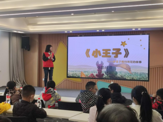 首先開始的是“影片賞析”活動。結(jié)合有趣的動畫,志愿者向小朋友們講解《小王子》影片中的唯美故事。