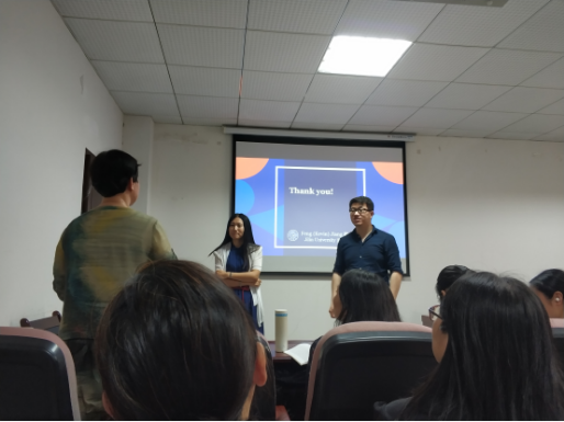 在短短的90分鐘里,姜教授為大家分享了很多新穎、熱門的知識(shí)點(diǎn)。同學(xué)們密密麻麻記滿了整張紙。姜教授的謙虛幽默也給大家留下了很深的印象。講座結(jié)束,老師和同學(xué)不舍得離開(kāi),紛紛留下繼續(xù)和姜老師進(jìn)行學(xué)術(shù)交流,并留影紀(jì)念。此次講座姜教授在大家的掌聲中離開(kāi),同學(xué)們?cè)诠P記本上卻留住了他的印記。