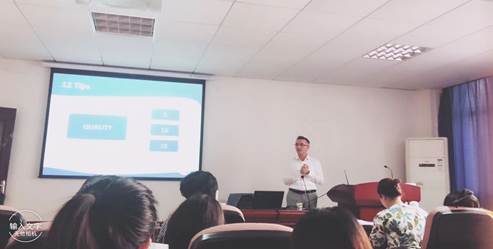 首先,他緊扣主題,明確闡述了何為教師研究和專業(yè)人員學(xué)習(xí)。其次,提出了有效的教師專業(yè)人員發(fā)展的特征:時(shí)間上的延伸度,行動上的積極和合作,思想上的反思,空間上的定位和由教師主導(dǎo)驅(qū)動。同時(shí)列舉了九個(gè)研究活動供教師參考,在其中著重講解了教師研究,教師研究是什么以及有何意義。在此,他區(qū)分了學(xué)術(shù)和專業(yè)人員研究目的的不同,為教師研究指明了明確的方向,教師研究是為了成為更好的教師而非研究者,這一點(diǎn)值得我們深思。第三,他用冰淇淋作為類比,用生動通俗的例子告訴我們教師研究的四種不同的切入點(diǎn)并歸納總結(jié)了研究的過程,即提問-行動-評估-學(xué)習(xí)-應(yīng)用-提問的無線循環(huán),期間研究者需要不斷閱讀,反思,與他人合作和交流。他通過案例分析Andy’s project向我們講述了整個(gè)研究過程。第四,他提到了數(shù)據(jù)收集的12種方法,并用生動的卡通圖片、做鬼臉圖等方式給予我們啟示:研究也可以是具有創(chuàng)造力且有趣的過程。第五,教師研究的諸多好處:教師更有自信心、上課動機(jī)更強(qiáng)、更具有批判性思維、理解體諒他人、更具有自主性,有新的想法更愿意去運(yùn)用到課堂中。第六,完成一個(gè)小任務(wù),將進(jìn)行教師研究的18條建議挑選出12個(gè)分4組進(jìn)行歸類。最終教授向我們展示了他的分類:質(zhì)量、可行性、相關(guān)性和合作。毫無疑問,他的這四種分類標(biāo)準(zhǔn)對我們的研究具有現(xiàn)實(shí)指導(dǎo)意義。最后,他向我們推薦了與教師研究相關(guān)的四本英文期刊,期望我們?yōu)樵擃I(lǐng)域的發(fā)展做出自己的貢獻(xiàn),踴躍投稿。該講座受到了外院師生的一致好評,我們都認(rèn)為Simon Borg教授不僅學(xué)識淵博,而且風(fēng)度翩翩、風(fēng)趣幽默,其講座主題緊密貼合我們的實(shí)際需要。