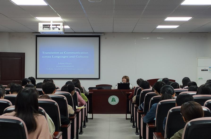 10月31日上午,Juliane House教授應邀蒞臨我院,與我院師生開展了題為“Translation as Communication across Languages and Cultures”的主題講座。本次講座在逸夫人文樓A2014舉行,由翻譯系副教授邢星老師主持,外國語學院全體研究生與教師參加。