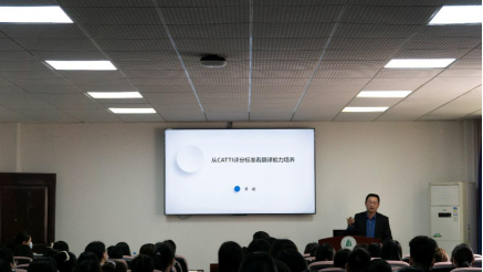 為對(duì)標(biāo)“學(xué)生中心、產(chǎn)出導(dǎo)向、持續(xù)改進(jìn)”的基本認(rèn)證理念,實(shí)現(xiàn)學(xué)院翻譯專業(yè)“一專多能、一憑多證”的培養(yǎng)目標(biāo),提升翻譯專業(yè)學(xué)生核心翻譯能力,以考促學(xué),以考促教,翻譯系特邀武漢大學(xué)黃敏博士于4月14日下午蒞臨學(xué)院,為學(xué)院師生帶來了一場題為“從CATTI評(píng)分標(biāo)準(zhǔn)看翻譯能力培養(yǎng)”的學(xué)術(shù)講座。本次講座在逸夫人文樓A2014舉行,由外國語學(xué)院副院長呂奇教授主持。