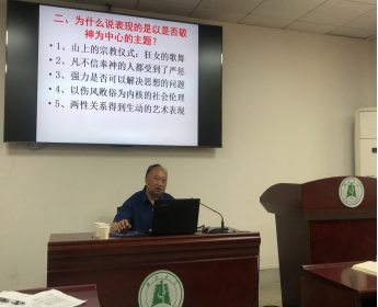 鄒教授重點從劇本涉及到的倫理沖撞問題分析劇本內(nèi)容與人物形象以及該劇本的深層象征意義。《酒神的伴侶》這一劇本,本質(zhì)上反映的是舊的倫理秩序和新思想的對撞沖突,是在專制政權(quán)下舊的倫理觀念與追求自由民主、個性解放和個人價值的對撞沖突。鄒教授認為,這部希臘早期的重要悲劇,沒有引起應(yīng)有的重視;但其在題材、主題、人物、結(jié)構(gòu)、語言和風格等方面,都具有高度的創(chuàng)造性。該劇本故事情節(jié)曲折復雜,人物形象個性鮮明,具有五彩繽紛的色調(diào),與那個時代的其他悲劇有很大不同。