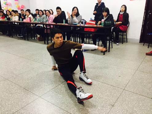 本著提高研究生們的口語(yǔ)水平,增強(qiáng)學(xué)院成員之間的交流與友誼的宗旨,此次英語(yǔ)角活動(dòng)進(jìn)行得熱鬧非凡。活動(dòng)一共分為五個(gè)環(huán)節(jié):第一個(gè)環(huán)節(jié),兩個(gè)學(xué)院代表各唱一首英文歌曲作為暖場(chǎng)秀。外國(guó)語(yǔ)學(xué)院的5位女生帶來(lái)了多國(guó)語(yǔ)版的《if you》。她們一亮嗓,喧鬧的教室瞬間安靜了下來(lái),每個(gè)人都開(kāi)始聆聽(tīng)她們的歌聲,婉轉(zhuǎn)動(dòng)聽(tīng)的旋律和富有特色的語(yǔ)言,獲得了現(xiàn)場(chǎng)熱烈的掌聲。緊接著體育學(xué)院全體人員齊上陣,為我們帶來(lái)了英文歌曲《hey,Jude》。雖然現(xiàn)場(chǎng)受條件限制,大家只能拿著手機(jī)跟唱,但是他們的氣勢(shì)足以展示體院同學(xué)們對(duì)英文的熱愛(ài)。隨后體院的侯光定同學(xué)給我們表演了“絕活”——自由體操空翻組合。在場(chǎng)的同學(xué)們都看得目不轉(zhuǎn)睛,為他的一起一伏屏住呼吸,贊嘆不已。