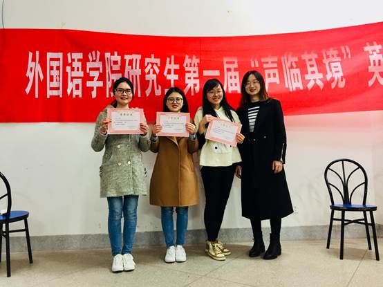2018年03月21日晚6時(shí)30分,外國(guó)語(yǔ)學(xué)院研究生在逸夫樓A3002成功舉辦了第一屆“聲臨其境”英語(yǔ)配音大賽。來(lái)自學(xué)科教學(xué)英語(yǔ)、筆譯和英語(yǔ)語(yǔ)言文學(xué)的11名同學(xué)參加了比賽。16級(jí)的朱漢敏學(xué)姐、張育林學(xué)姐、SOMA劇團(tuán)的艾舒阿克和安婭婷擔(dān)任了評(píng)委。