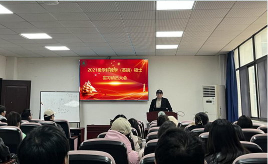 近日,湖北大學(xué)外國(guó)語(yǔ)學(xué)院2021級(jí)學(xué)科教學(xué)(英語(yǔ))碩士研究生實(shí)習(xí)動(dòng)員大會(huì)在逸夫人文樓A2014舉行。會(huì)議由學(xué)院副院長(zhǎng)楊小彬主持,學(xué)科教學(xué)(英語(yǔ))學(xué)位點(diǎn)負(fù)責(zé)人張睿副教授和教學(xué)秘書(shū)尚萬(wàn)茹老師參加會(huì)議。