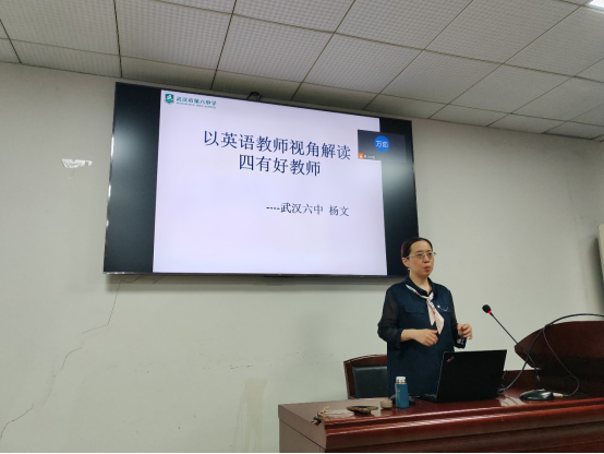 這次講座的主題是“以英語(yǔ)教師視角解讀四有好教師”。四有好老師指“有理想信念、有道德情操、有扎實(shí)學(xué)識(shí)、有仁愛(ài)之心”的老師。楊老師首先指出,只有做一名具有崇高理想、師德高尚、業(yè)務(wù)精湛、專業(yè)素質(zhì)高并且擁有仁愛(ài)之心的“四有”教師,才能培養(yǎng)出積極向上、團(tuán)結(jié)奮進(jìn)的新時(shí)代好老師;其次,楊老師針對(duì)這“四有”分別進(jìn)行詳細(xì)的闡述,并結(jié)合楊老師從教的具體實(shí)例提供了一些寶貴的建議,包括如何處理同事、師生、教師和家長(zhǎng)之間的關(guān)系;如何做一名優(yōu)秀的班主任;要有愛(ài)心有責(zé)任心等等。楊老師重點(diǎn)強(qiáng)調(diào)了做一名班主任的重要性,指出“沒(méi)有當(dāng)過(guò)班主任的教師是不完整的”。