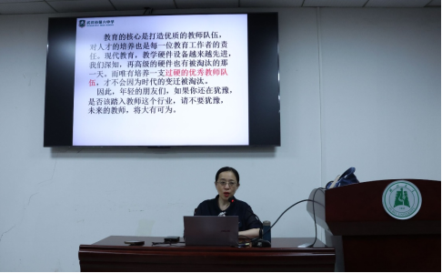 這次講座的主題是“以英語教師視角解讀四有好教師”。首先楊老師指出,“四有好教師”不僅是教師職業(yè)的基本標(biāo)準(zhǔn),更是教師終身發(fā)展的方向指引;其次,楊老師針對“四有”即有理想信念、有道德情操、有扎實學(xué)識和有仁愛之心這四個方面分別進(jìn)行了詳細(xì)闡述,并結(jié)合楊老師從教的具體實例提供了一些寶貴的建議,包括如何處理同事、師生、教師和家長之間的關(guān)系。楊老師特別強調(diào),在核心素養(yǎng)導(dǎo)向下,班主任工作仍是教師專業(yè)成長的重要平臺。她指出,“班主任工作是道德情操的具體體現(xiàn),是教育教學(xué)的重要表現(xiàn)”,并分享了多個班級管理及家校溝通的實際案例,為同學(xué)們提供了可借鑒的實踐策略。