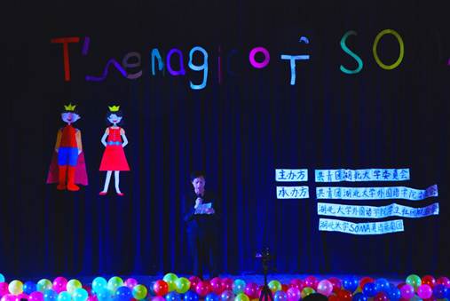 5月5日晚7點(diǎn),第三十屆沙湖之春藝術(shù)節(jié)暨SOMA新人秀晚會(huì)在商學(xué)院三號(hào)報(bào)告廳隆重舉行。出席本次晚會(huì)的領(lǐng)導(dǎo)嘉賓有外國(guó)語學(xué)院黨委書記林二友,副院長(zhǎng)郭熙煌,黨委副書記羅超,團(tuán)委老師向楊。此次晚會(huì)由校團(tuán)委主辦,外國(guó)語學(xué)院團(tuán)委、外國(guó)語學(xué)院社團(tuán)聯(lián)和SOMA英語話劇社承辦。
