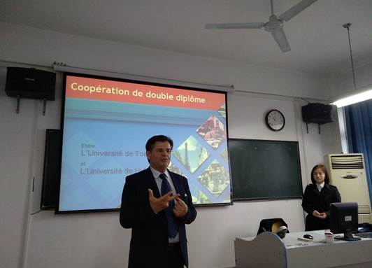 此次宣講主要面向湖北大學(xué)外國語學(xué)院法語系的大三學(xué)生,Jean Galanos院長詳細(xì)闡述了兩校合作項目的優(yōu)勢以及土倫大學(xué)針對交換留學(xué)生的課程設(shè)置,并鼓勵同學(xué)們積極參加此次出國留學(xué)活動。此外,巫曉慧老師還向大家介紹了土倫大學(xué)的基本情況,包括校區(qū)分布,衣食住行等等。