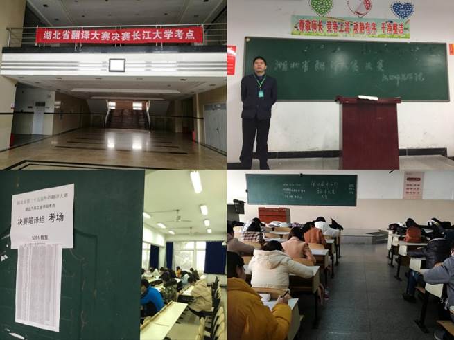 2018年 12 月1 日,由湖北省翻譯工作者協(xié)會(huì)主辦的第二十五屆湖北省翻譯大賽決賽在湖北各地正式開賽。荊楚大地,譯才濟(jì)濟(jì)!鑒于決賽選手多達(dá)7000 多名,為方便選手就近參賽,大賽組委會(huì)在武漢、黃岡、黃石、咸寧、孝感、襄陽、宜昌、恩施、荊門、十堰、荊州等11座城市設(shè)置了決賽賽場。主賽場設(shè)在湖北大學(xué),武昌理工學(xué)院、黃岡師范學(xué)院、湖北師范大學(xué)、 湖北理工學(xué)院、湖北師范大學(xué)文理學(xué)院、湖北科技學(xué)院、湖北工程學(xué)院、湖北文理學(xué)院、三峽大學(xué)、三峽大學(xué)科技學(xué)院、湖北民族大學(xué)、湖北民族學(xué)院科技學(xué)院、恩施職業(yè)技術(shù)學(xué)院、荊楚 理工學(xué)院、漢江師范學(xué)院、湖北汽車工業(yè)學(xué)院、長江大學(xué)、長江大學(xué)文理學(xué)院等18 所高校承擔(dān)了決賽分賽場考務(wù)工作。