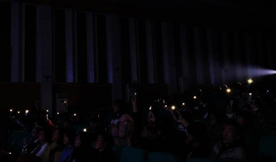 歌曲串燒將晚會推向高潮,觀眾們紛紛跟隨音樂節(jié)奏打起節(jié)拍。隨后,在《City of Stars》的獨唱節(jié)目中,只見臺下觀眾們手中的熒光棒整齊的隨樂律動。
