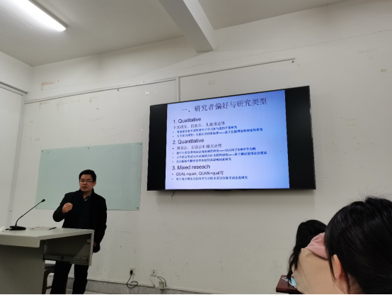 3月26日下午 2:00-3:30,英語系教師教育實踐專題講座第二場于逸夫樓A1010教室順利舉辦。講座邀請到我院優(yōu)秀青年教師梅勇博士為2018級師范生做關(guān)于外語教育研究設(shè)計及報告撰寫的專題指導(dǎo)。