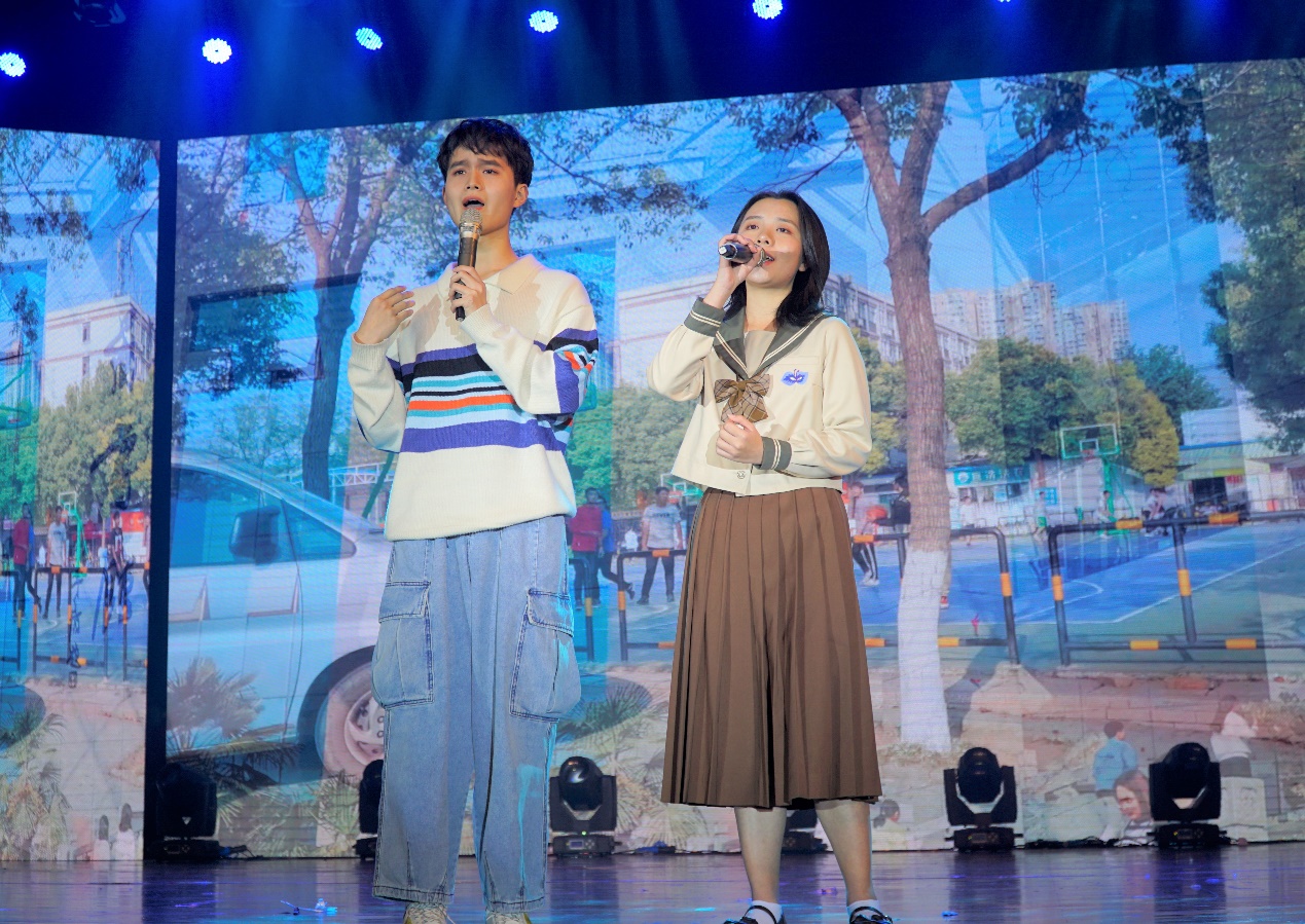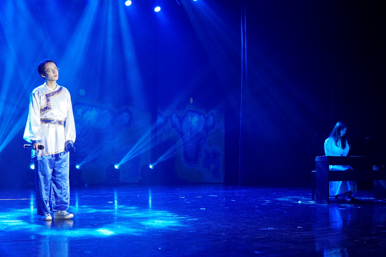 在晚會第二篇章,一曲《華夏》點燃了現(xiàn)場氣氛,表演者用說唱的形式歌頌了勞動人民用汗水創(chuàng)造奇跡的五千年華夏文明;學(xué)生會帶來的小品《上學(xué)那些事》令人捧腹;歌舞串燒《貝加爾湖畔》《心上人》將漢族、維吾爾族風(fēng)情完美結(jié)合;歌曲串燒《咿呀呀》《我的歌聲里》旋律動人,觀眾們用手中的熒光棒為兩位歌者揮出一片星海。