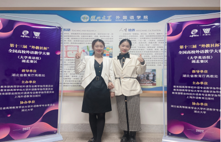 2022年11月6日,第十三屆“外教社杯”全國高校外語教學(xué)大賽(大學(xué)英語組)湖北賽區(qū)決賽圓滿落幕。經(jīng)過激烈角逐,我校外國語學(xué)院的龔佳玉老師、陶然老師雙雙斬獲桂冠,分獲湖北賽區(qū)決賽綜合組和視聽說組特等獎,將代表湖北省參加全國總決賽。