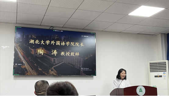 陶濤院長代表學(xué)院向中國新華新聞電視網(wǎng)陳總一行蒞臨指導(dǎo)、向各兄弟高校和本校全體參會(huì)師生的到來表示熱烈歡迎和誠摯感謝,并分別介紹了學(xué)院的基本情況以及學(xué)院翻譯團(tuán)隊(duì)近年來服務(wù)國家戰(zhàn)略、地方經(jīng)濟(jì)發(fā)展尤其是參與重大國際體育賽事語言服務(wù)、新聞服務(wù)和國際傳播的相關(guān)事跡。