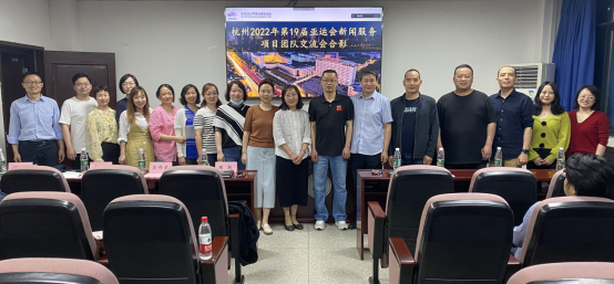 4月17日,杭州亞運(yùn)會(huì)新聞服務(wù)項(xiàng)目筆譯團(tuán)隊(duì)交流會(huì)在學(xué)院舉行。中國新華新聞電視網(wǎng)副總裁陳越、演播播出中心主任吳偉武、技術(shù)中心副主任郝剡、杭州亞運(yùn)會(huì)新聞服務(wù)項(xiàng)目總體協(xié)調(diào)顧問胡靜、湖北大學(xué)外國語學(xué)院院長陶濤教授等領(lǐng)導(dǎo)以及杭州亞運(yùn)會(huì)新聞服務(wù)項(xiàng)目筆譯團(tuán)隊(duì)師生代表參加了交流會(huì)。本次活動(dòng)在逸夫人文樓A2014舉行,由外國語學(xué)院副院長呂奇教授主持。