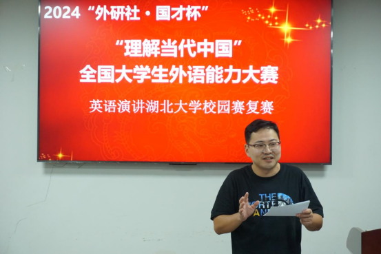 為了深入學(xué)習(xí)習(xí)近平新時代中國特色社會主義思想,為國家培養(yǎng)更多有家國情懷、有全球視野、有專業(yè)本領(lǐng)的高水平國際化人才,提升我校學(xué)生的英語演講能力和跨文化交流能力,我校分別于9月18日、9月20日舉辦了2024“外研社?國才杯”“理解當(dāng)代中國”英語演講比賽湖北大學(xué)校選賽的兩輪比賽。